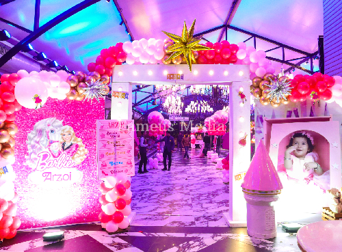 The Barbie aficionados on our staff create captivating scenes, including Barbie houses, Barbie dolls of actual size, and pale pink and white props. Catering services, decorations, favors, and even cake tables are customized to fit the Barbie theme, and nothing is too small to be overlooked. To support this, we use Fabulous welcoming balloon arches picture-frame-like bubble curtains, and custom-designed backdrops to recreate the Barbie world.